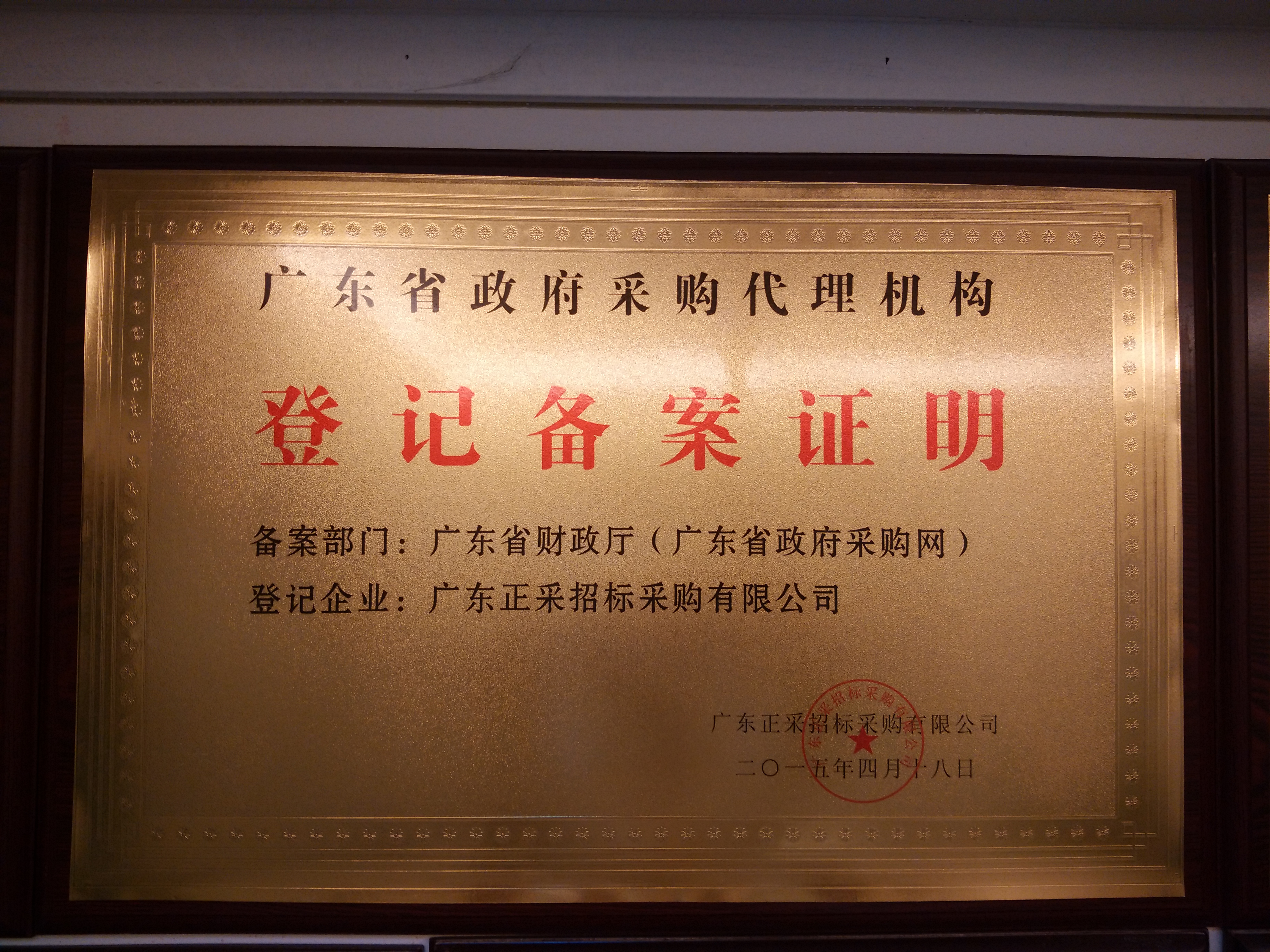 廣東省政府采購代理機構備案證明